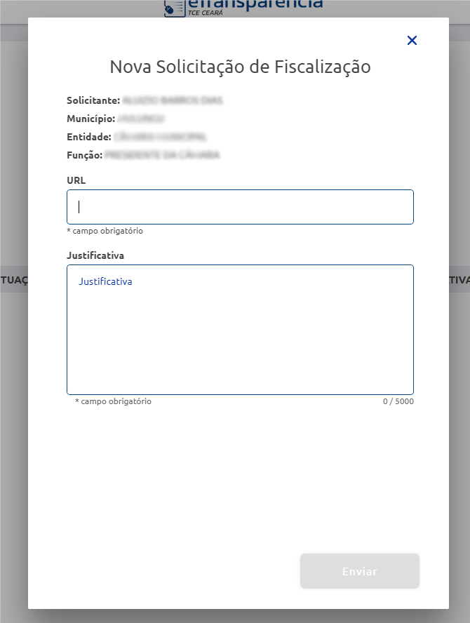4 – Preencher os dados URL e justificativa e enviar.