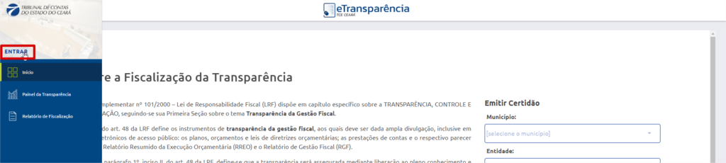 1 – Acessar o eTransparência e selecionar ENTRAR