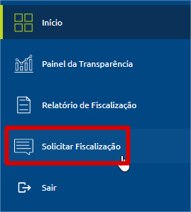 2 – No menu lateral selecione a opção “Solicitar Fiscalização”
